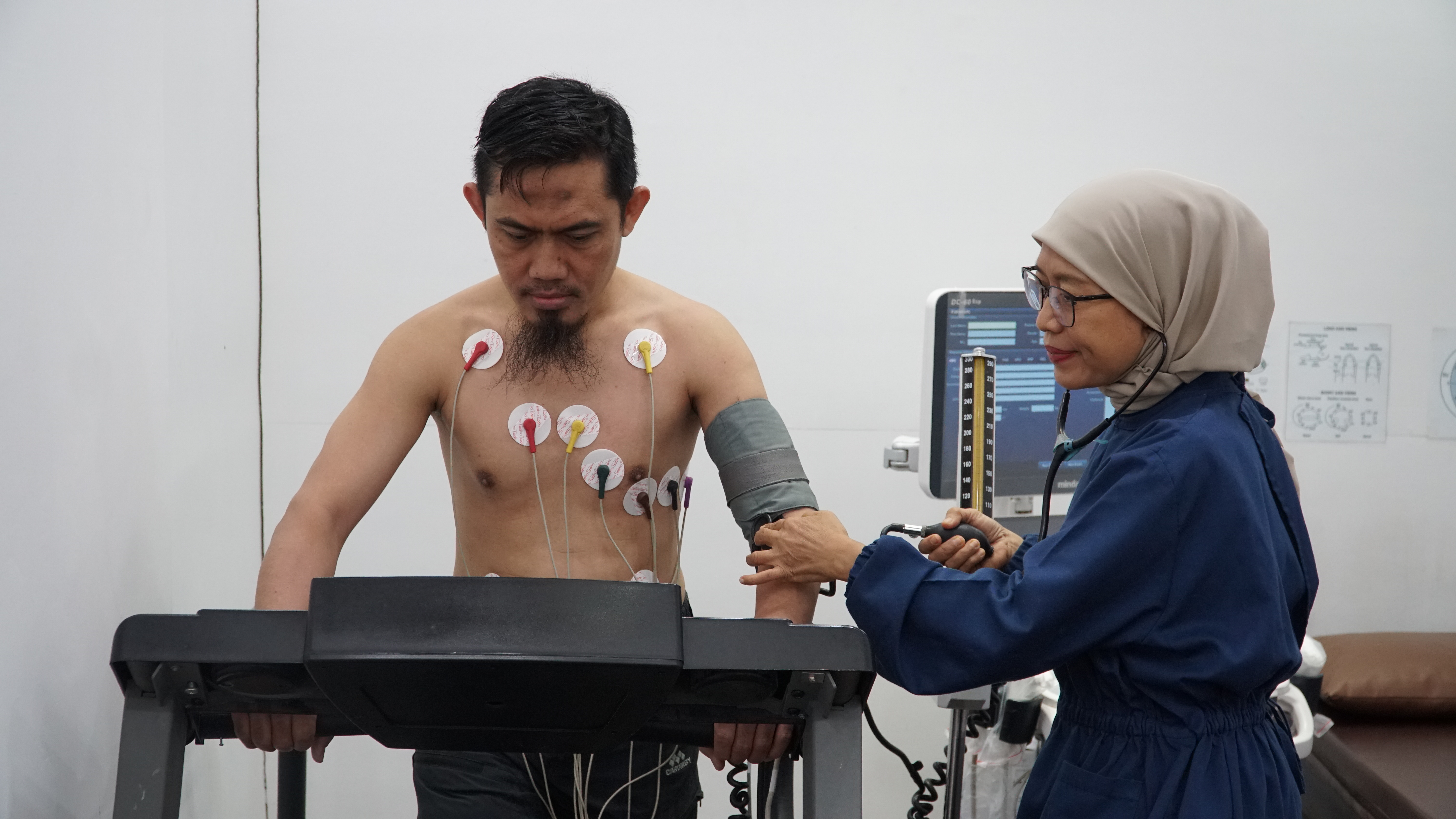 Terlihat dari hasil pemeriksaan angiografi terdapat penyempitan kembali (restenosis) pada ke-tiga ring jantung yang pernah dipasangkan pada pasien tersebut.