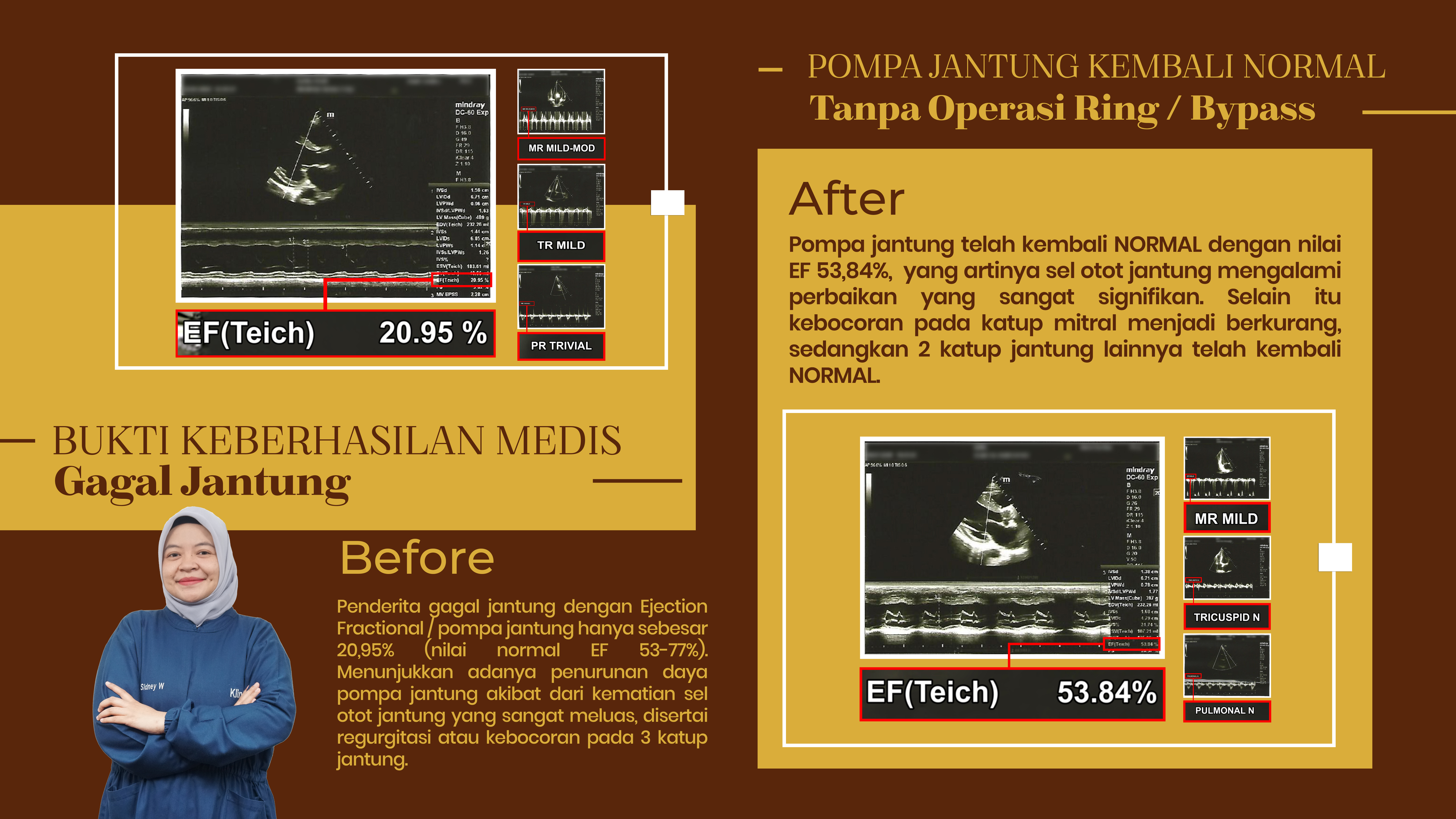 Sebelum ke klinik ALKINDI Pompa Jantung saya secara kesalahan 35% setelah pengobatan kurang lebih 1 bukan diklinik ALKINDI dan dicek kembali ada kenaikan menjadi 44%, Alhamdulillah dengan pengecekan tiap bulan selalu ada peningkatan dengan rutin minum obat dan konsultasi diklinik ALKINDI, lalu setelah 3 bulan setengah pompa jantung saya ada kenaikan di 65%